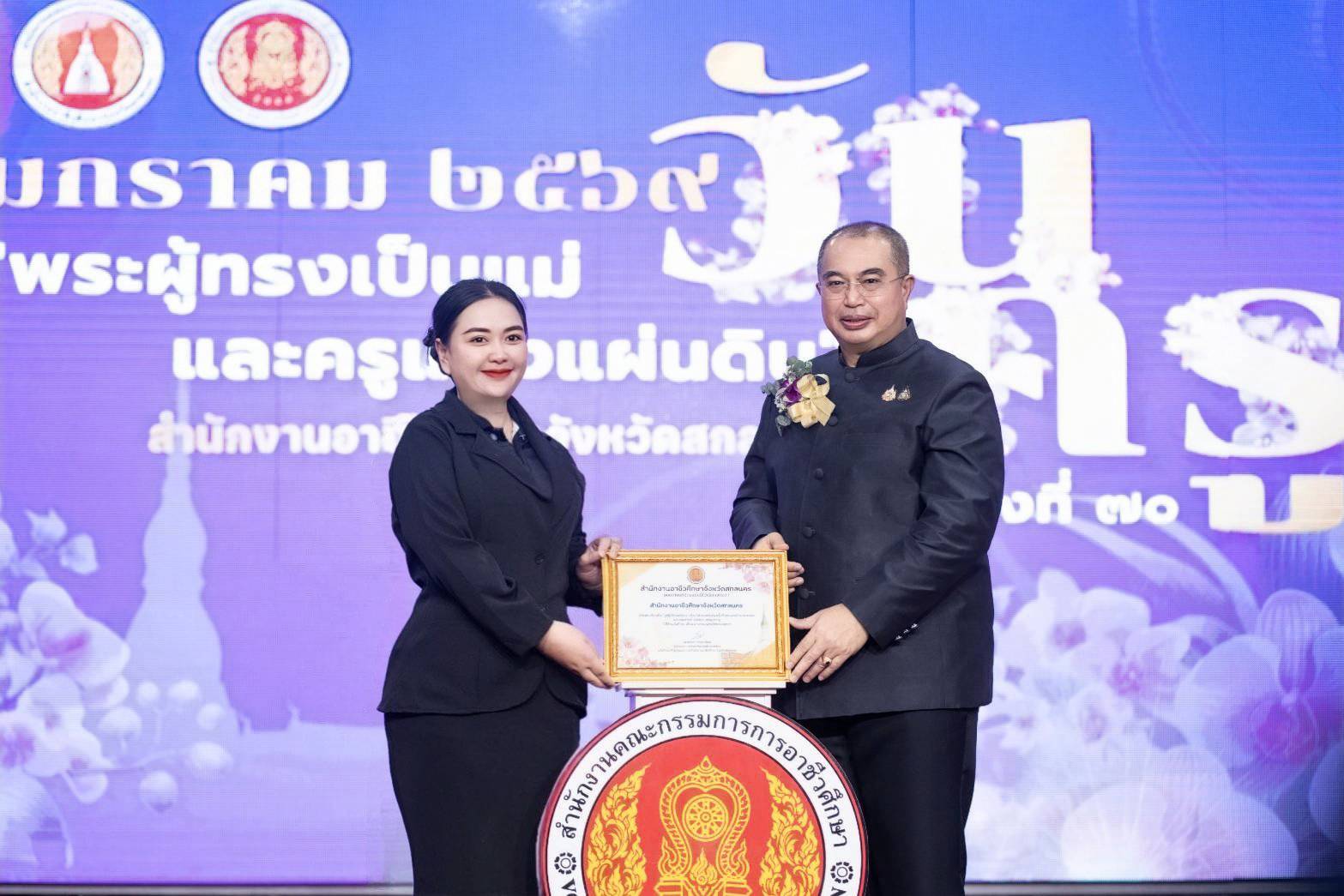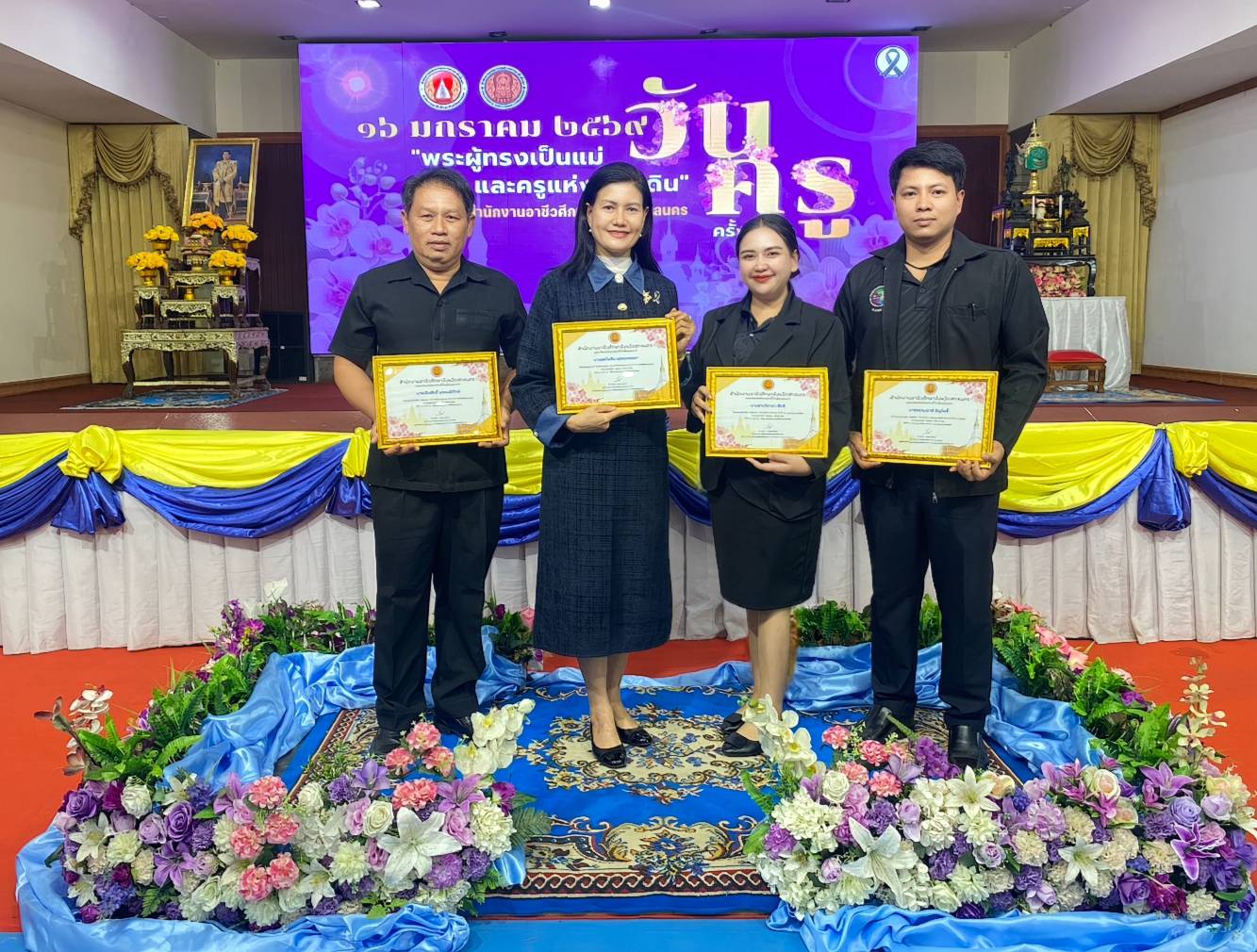 วันศุกร์ที่ 16 มกราคม 2569 นางพรไพลิน พรหมจรรยา ผู้รับใบอนุญาต ผู้อำนวยการ และคณะครู เข้าร่วมรับรางวัลผู้บริหารดีเด่น ครูดีเด่น เนื่องในวันครูแห่งชาติ ครั้งที่ 70 พุทธศักราช 2569 "พระผู้ทรงเป็นแม่ และครูแห่งแผ่นดิน" สำนักงานคณะกรรมการการอาชีวศึกษาจังหวัดสกลนคร ณ ห้องประชุมห้วยทราย 3 วิทยาลัยเทคนิคสกลนคร จังหวัดสกลนคร