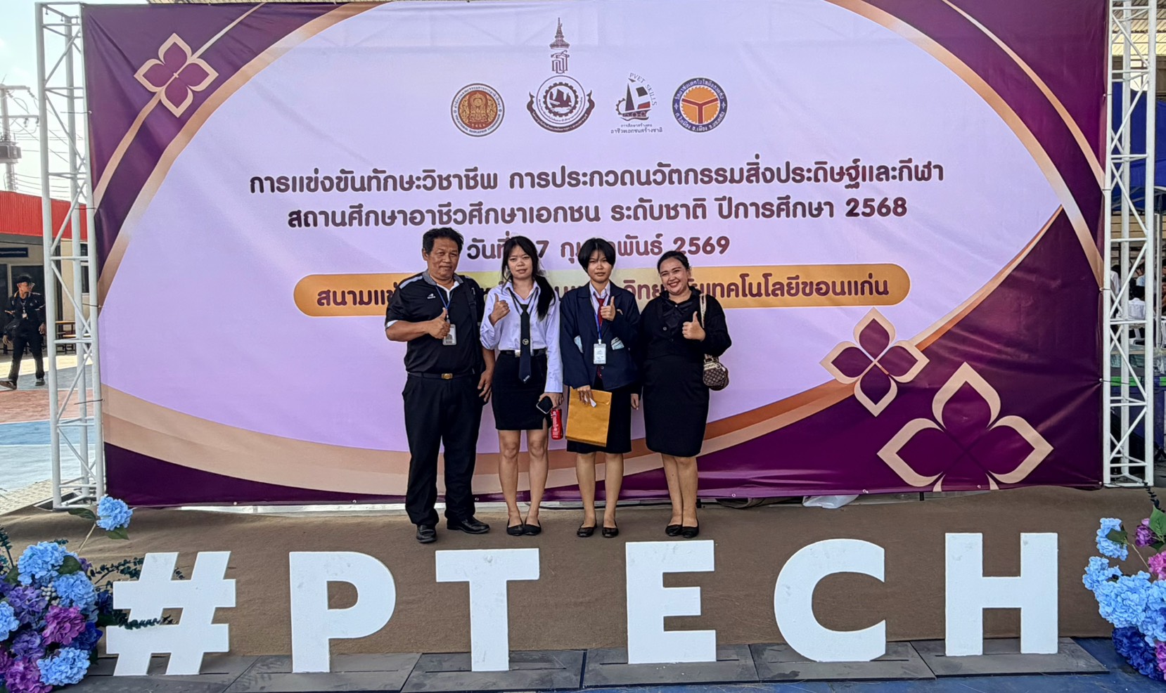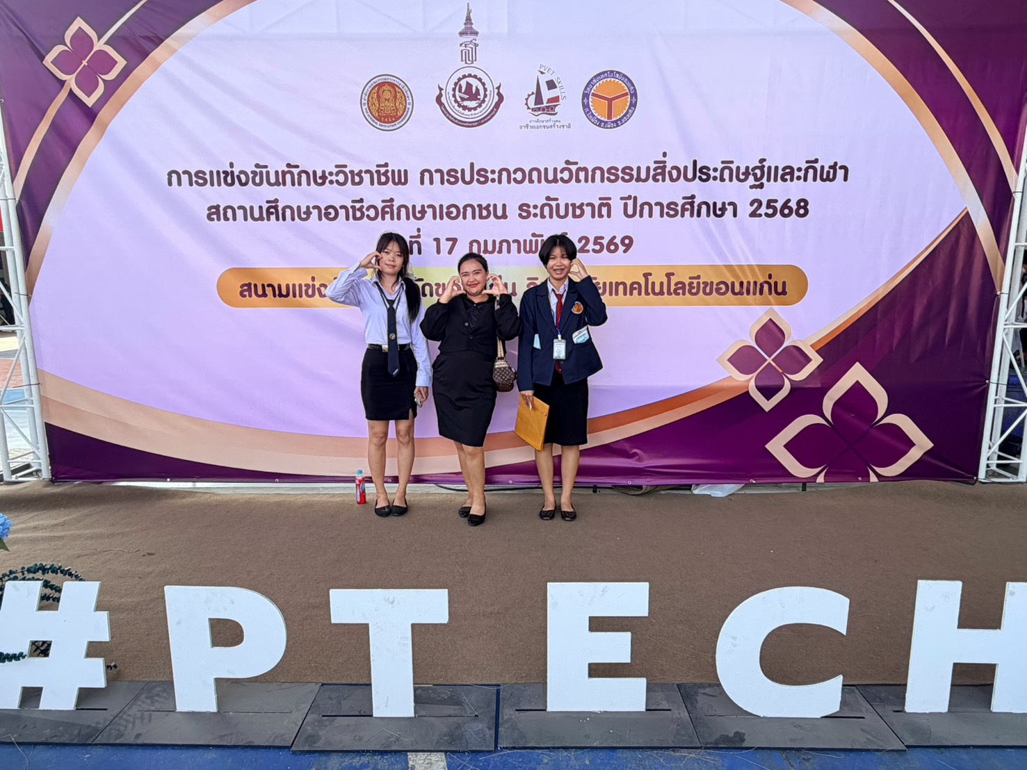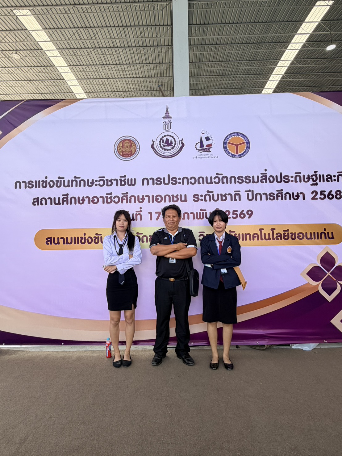 วันอังคารที่ 17 กุมภาพันธ์ 2569 นางพรไพลิน พรหมจรยยา ผู้รับใบอนุญาต มอบหมายให้ ผู้อำนวยการ คณะครู นำตัวแทนนักศึกษาเข้าร่วม การแข่งขันทักษะวิชาชีพ การประกวดนวัตกรรมสิ่งประดิษฐ์และกีฬา สถานศึกษาอาชีวศึกษาเอกชน ระดับชาติ ปีกาศึกษา 2568 ณ วิทยาลัยเทคโนโลยีภาคตะวันออกเฉียงเหนือ จังหวัดขอนแก่น วิทยาลัยเทคโนโลยีขอนแก่น และวิทยาลัยเทคโนโลยีคุวานันท์